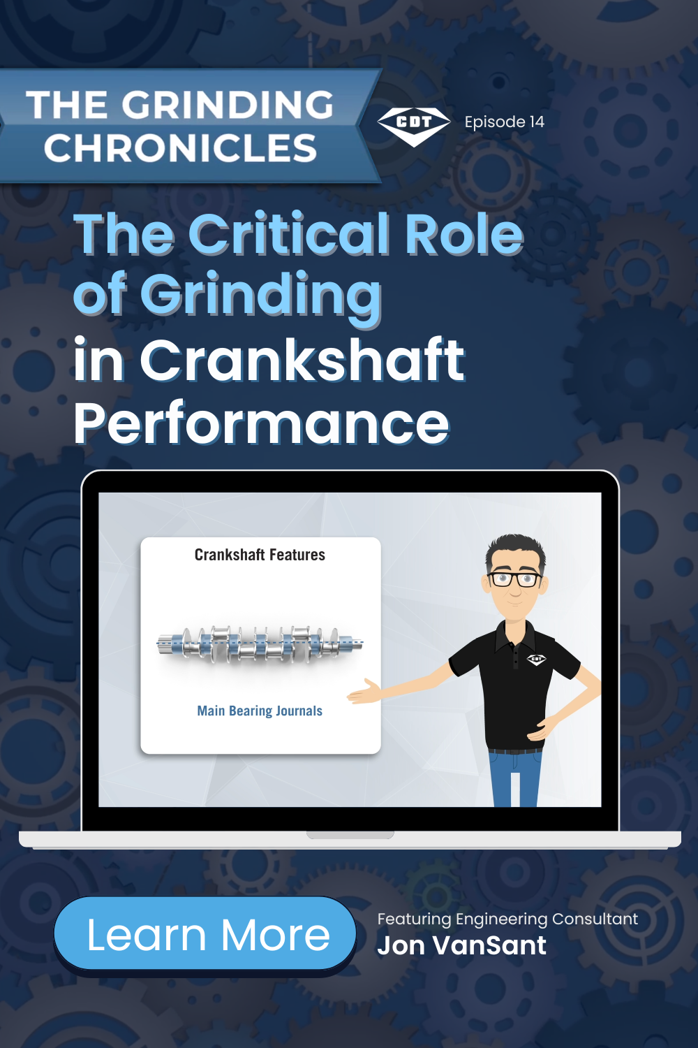 In this episode of The Grinding Chronicles, CDT Engineering Consultant Jon VanSant walks through the anatomy of a crankshaft and explains the grinding methods used to produce high-performance results. Watch the video or read on for a breakdown of the processes involved.
